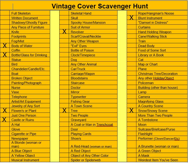 Happy (belated) New Year! 2026 really sneaked up on me, and I’m scrambling to finish up my 2025 reviews and recaps. I had another very fun year of reading vintage mysteries with the Vintage Scavenger Hunt Challenge at My Reader’s Block. My goal was to read at least eight books in the “Golden Age” period (published before 1960) and find items from the scavenger hunt list on the covers. Here’s what I read in 2025: