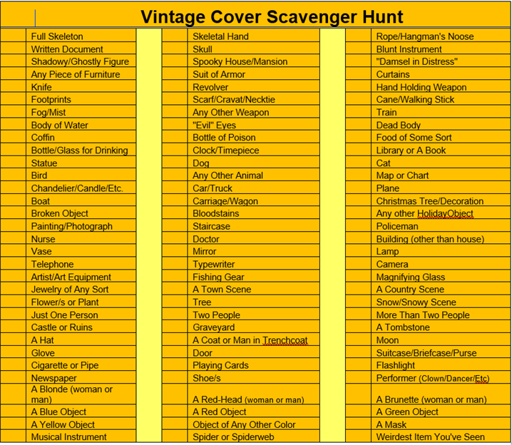 New year, new vintage mystery challenge! Once again Bev at My Reader’s Block is hosting a Vintage Mystery Scavenger Hunt, in which participants must “find as many objects on the scavenger hunt list as possible on the covers of the mystery books you read.” As usual, I plan to read at least the minimum of eight books in the Golden Age category, focusing on mysteries published before 1960. Looking forward to another year of classic crime!