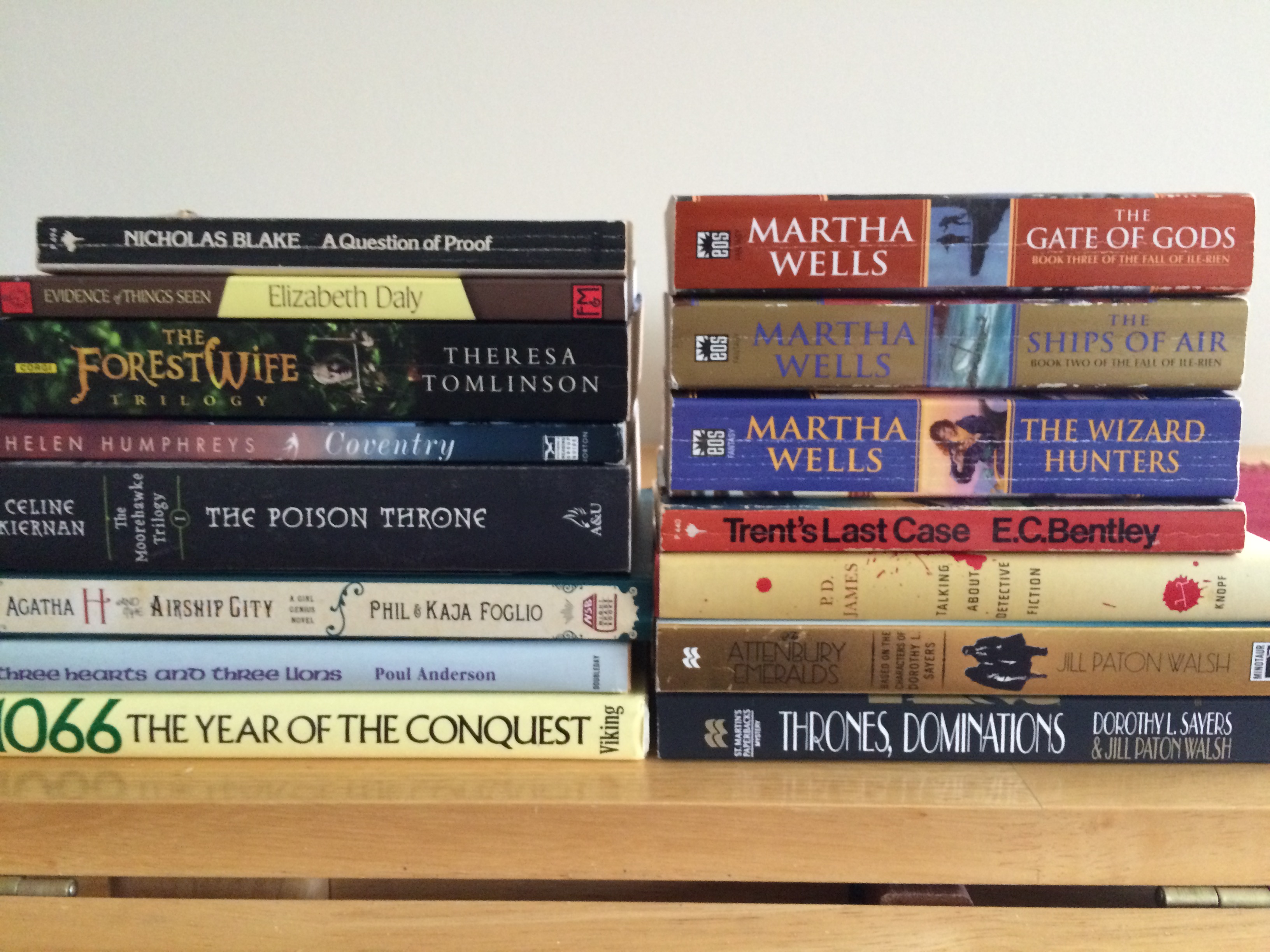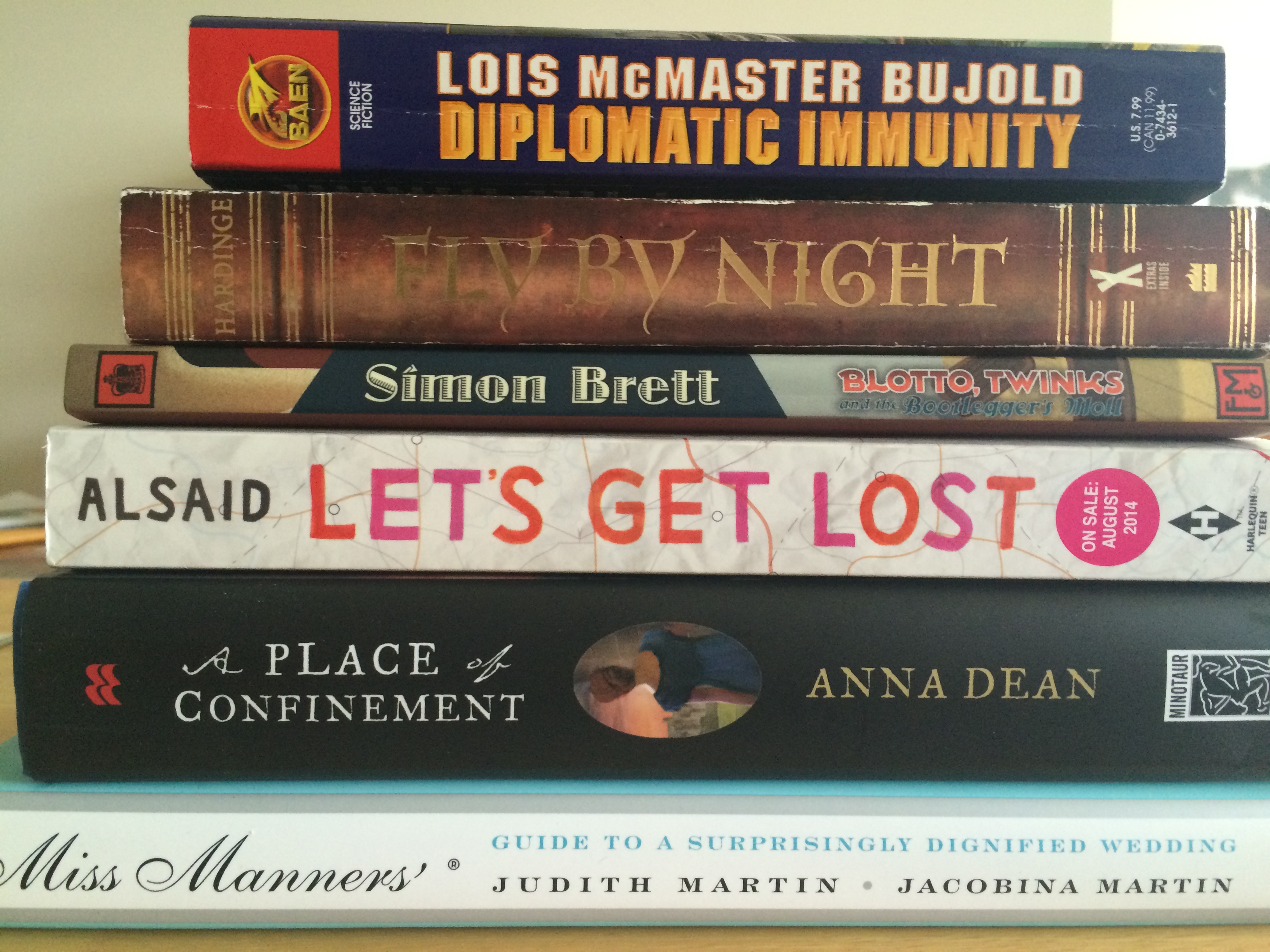 Allison Leotta was one of the panelists at the “Blogging & the Law” session, and she was giving away copies of Discretion and Speak of the Devil. Unfortunately, they’re books 2 and 3 in a series of legal thrillers, so I’ll have to track down book 1, Laws of Attraction, before I can read them! I also picked up The Accidental Highwayman by Ben Tripp, because I’m a sucker for any book with a long and humorous subtitle. I was intrigued by R.C. Lewis’ Stitching Snow, which looks like a sci-fi retelling of Snow White. The Only Thing to Fear by Caroline Tung Richmond is an alternate history in which Germany won WWII. And I’ve already read Jackaby by William Ritter, which is a charming YA novel set in 19th-century America. The titular character shares more than a passing resemblance to BBC’s “Sherlock,” and there are lots of fun, fantastical hijinks!